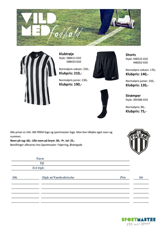 Som det fremgår nedenunder er alle priser inkl. Hjørring AIK Frem og Sportmaster logo.